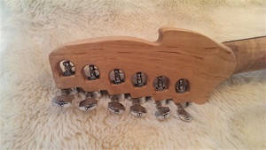 The Hyperion reverse headstock maximizes proper benefits of string length vs. tension. That is, longer length on bass string yields a tighter feel and stronger fundamental whereas the shorter length on the treble strings facilitates ease of bending and allows the player to use a heavier gauge string for stronger tones. The Mezmer reverse slotted headstock design is an innovative solution to the usual flipped headstock problem of uncomfortable access to tuners, with the Mezmer 6 on a side slotted style, a player can reach over quickly to make tuning adjustments during a performance with ease.